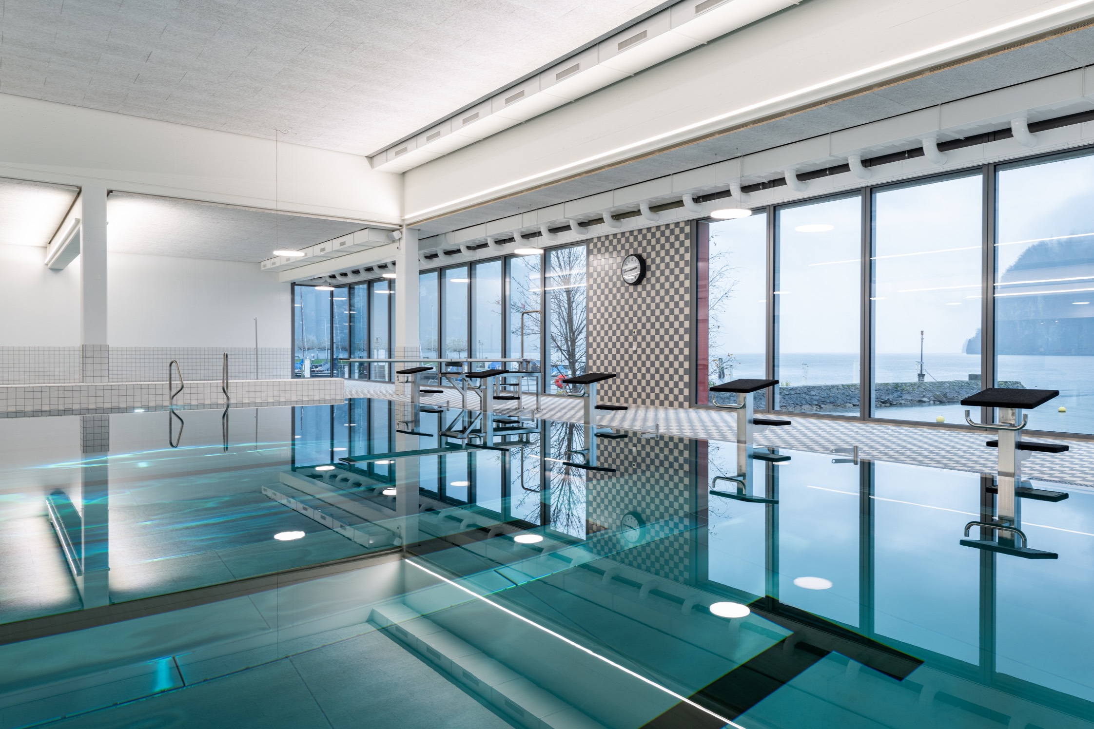 Die Sanierung des Hallenbads Brunnen beinhaltet die Erneuerung von Tragstrukturen und Schwimmbecken. Diese wurden mit modernen Stahlbecken ersetzt. Zusätzlich erhielten die Garderoben eine Auffrischung und wurden neu und zeitgemäss gestaltet.